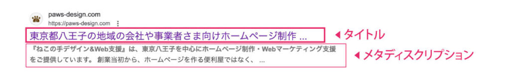 上記の画像のように検索結果に表示される部分です。