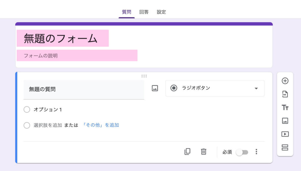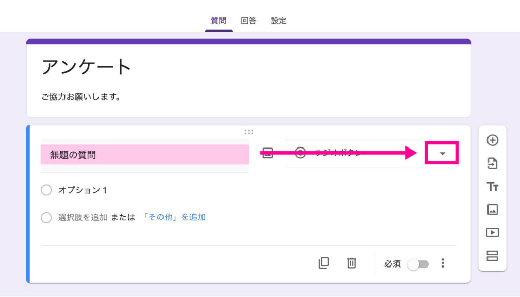三角の矢印をクリックすると、回答の形式を選ぶことができます。