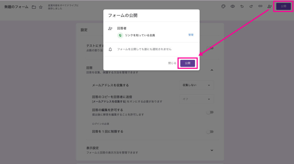 『フォームの説明』欄には、アンケートに回答してくれる方へのお礼など、メッセージを入れましょう。