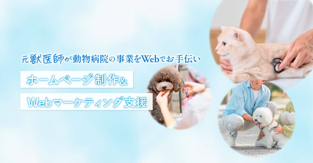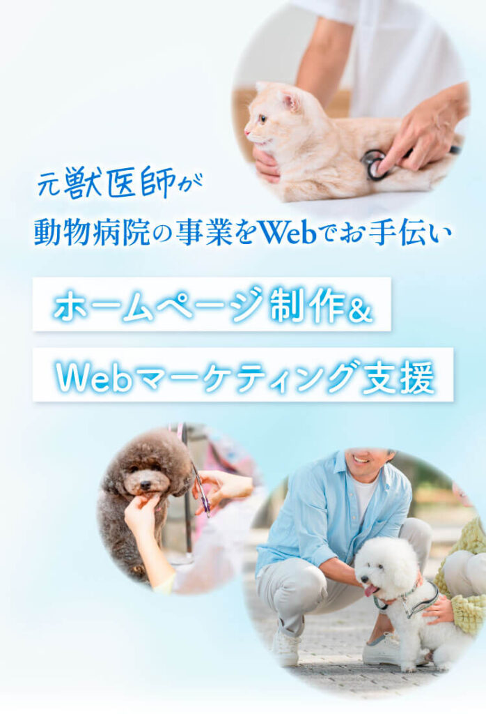 獣医師として働いてきた経験と、Webマーケティングの知識を掛け合わせ、動物病院と飼い主さまが共に幸せになるホームページをご提案します。